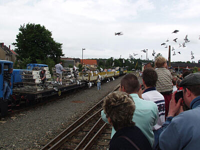 Das Bahnhofsfest - verbunden mit dem Tag der offenen Tür - war auch in diesem Jahr ein voller Erfolg. Ein erster Höhepunkt war am Vormittag die Eröffnung des Technischen Museum des Kohlebahnvereins. Bis zur letzten Minuten hatten die Kohlebahner gearbeitet - die gute Resonanz der Besucher war ein Dank für ihre Mühen. Zum Tag der offenen Tür gehört bei der Kohlebahn natürlich auch die Vorführung der vorhandenen Fahrzeugtechnik - so konnte man beispielsweise die Gleisstopfmaschine in Aktion sehen. Höhepunkt am Nachmittag war der erneute Guinness-Buch Rekordversuch - diesmal stiegen über 700 Tauben vom fahrenden Zug in die Lüfte.