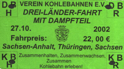 Veranstaltungen der Kohlebahn Dreiländerfahrt am 27.10.2002