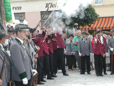 Fahnenweihe der Privilegierten Schützengesellschaft Meuselwitz 1766 e.V. Es nehmen zahlreiche Schützenvereine aus der Umgebung teil, Höhepunkt ist ein Salutschießen aller teilnehmenden Vereine.