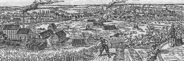 Unsere Reproduktion gibt einen guten Einblick, wie man früher in Meuselwitz die Torfgräberei betrieb. Das Bild wurde gezeichnet auf der Grundlage einer sehr alten Lithographie vom Altenburger Maler Müller-Gräfe, und die Bildbeschreibung, die hier teilweise verwendet wird, hat H. Meyer überliefert. Das betrachtende Ehepaar steht auf dem damaligen Rondell am Südwestabhang des Meuselwitzer Weinberges. Diese beiden konnten es sich leisten, die schwere Arbeit zu betrachten, denn sie gehörten ihrer Kleidung nach einem Stande an, der auch ohne Arbeit seines Brotes sicher war. Er in Bratenrock und Zylinder, sie in Mantille mit Quaste im Falbelrock, das war damals um 1850 nicht die Kleidung der hart Arbeitenden. Der im Vordergrund schaffende Bauer arbeitet in der charakteristischen Tracht der Altenburger Bauern. Es ist kein Knecht, der sich für die Herrschaft mit Mähen abmüht, in ihm sehen wir den Besitzer der Grube und des Feldes, Christian Kluge, und das Mädchen, das ausruhend im Grase sitzt, ist seine Schwester Sophie, die den Kaffee gebracht hat. Die Blicke der beiden Spaziergänger sind nach Westen und Nordwesten gerichtet, auf Kluges Grubenfelder, des Anspanners Geißler und des Georg Bauer aus Heukendorf. Man erkennt die Altenburger Straße, die Weinbergstraße, den Fasanenweg, den Weg nach Schnauderhainichen an der Schnauder hin und im Hintergrund die mit Bäumen bepflanzte Luckaer Straße. Besonders auffallend ist der reiche Bestand an Pappeln im Schloßgarten, und daß in diesem Jahr die Weberei hier zu Hause war, mag die rauchende Esse der Heinrich Herbstschen Fabrik bezeugen. Und was erzählt das alte Bild vom Betrieb einer Torfgrube? Im Vordergrund breitet sich die von Kluge 1839 angelegte Grube an der weinbergstraße aus mit Kessel- und Maschinenhaus, rechts und links davon liegen die Trockenscheunen. Am nördlichen Ende der rechten Scheune steht das Wohnhaus des Betriebsführers Christian Müller. Rechts der rechten Trockenscheune befinden sich der Pferde- und Holzstall. Die Geschirre, die Torfsteine abfahren wollten, trafen oft schon um 4 Uhr früh ein, denn sie kamen oft von weit her nach Meuselwitz, wie zum Beispiel die Oberländer aus Gera. Stundenlang mußten sie warten, bis die Torfsteine verladen waren, und so wurden die Pferde im Stall der Grube untergestellt. Mit der Aufstellung der Wasserhebemaschine im Jahre 1848 wurden dann keine Pferdegöpel mehr betrieben, und der Stall wurde für die Grubenpferde nicht mehr gebraucht. Vor dem Stall ist ein Wassertümpel erkennbar, in dem das Pumpenwasser gesammelt wurde, das der Zurichter holte und dem Einsümpfer brachte. Von den Arbeitern sehen wir die Sümpfer, Streicher, Kärrner und Stapler bei ihrer Arbeit. Der Sümpfer übergießt die klare Kohle mit Wasser und tritt sie mit dem Füßen richtig durch. Die Masse nimmt der Streicher und wirft sie in einen Holzkasten, der in Fächer geteilt ist. Hier wird der Torf zu Ziegeln geformt, also gestrichen. Der Kärrner fuhr die Ziegel auf den Plan, damit sie in Wind und Sonne vortrockneten. Es konnten also nur im Sommer Ziegel hergestellt werden. Meistens durch Kinder wurden dann die Torfziegel öfter umgestapelt, damit sie von allen Seiten trockneten. Nach der Trocknung fuhr der Kärrner die Ziegel zum Stapler, der sie zu 3/4 Meter hohen Mauern setzte. Auf dem Bild sind vier solcher "Mauern" erkennbar. Später kamen die Ziegel zur vollständigen Trocknung in die Trockenscheunen, aber oft wurden sie auch schon so verkauft. Kluge hatte einmal in den Trockenscheunen, die hundert Meter lang und neun Meter breit waren, 3000 Zentner Klarkohle und 100 000 Ziegel vorrätig, die in Flammen aufgingen, weil ein Arbeiter beim Rauchen unvorsichtig war. Am Fasanenweg hin sehen wir die Grubenanlagen von Christian Geißler, der um diese Zeit zwei Schächte hatte, aus denen mit Haspel gefördert wurde. Die beiden Fördertürme sind erkennbar. Links auf dem Bild erblicken wir die Grube des Georg Bauer aus Heukendorf, zwischen der Weinbergstraße und der Altenburger Straße. Übrigens wurden die Stollenvortriebe des Bauer beim späteren Abbau durch den "Fortschritt-Schacht" wieder gefunden.
